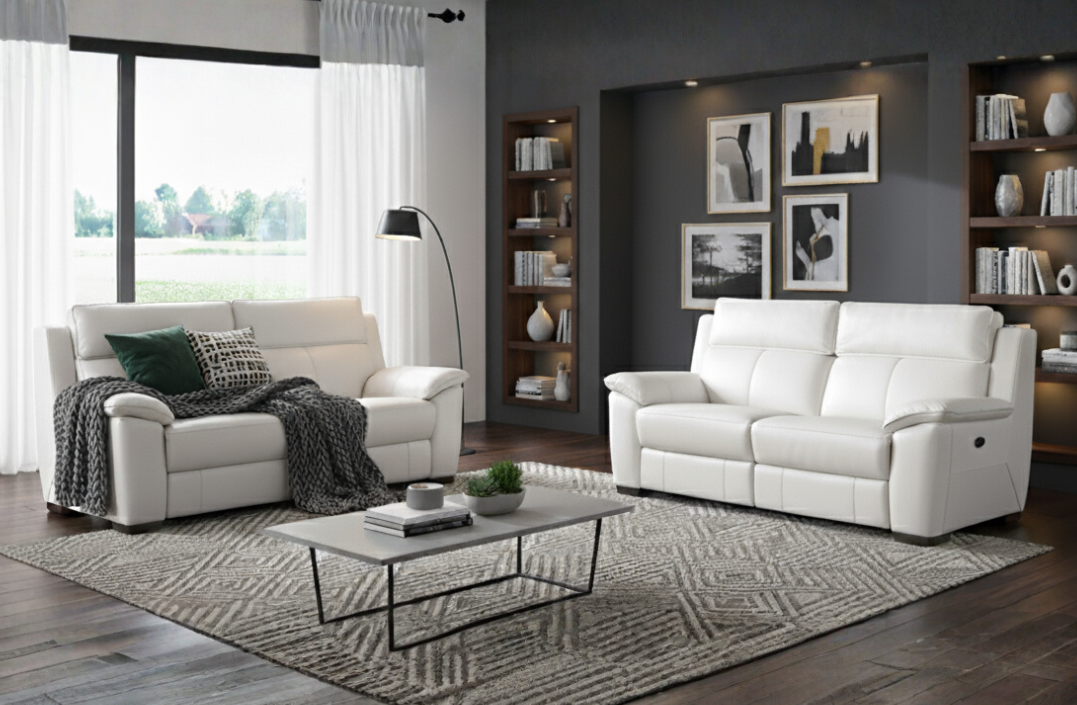 This Barcelona 2.5 seater with end electric recliners is perfect for modern-style living spaces. It offers premium fabric and full leather options with a luxurious electric recliner function for maximum comfort. Upgrade your living space with this modern and elegant corner suite.
